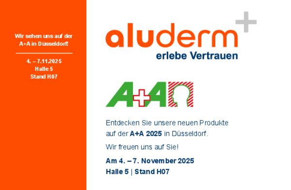 Wir sind auf der A+A in Düsseldorf! Besuchen Sie uns und erfahren Sie alles über unsere neuen aluderm Produkte.